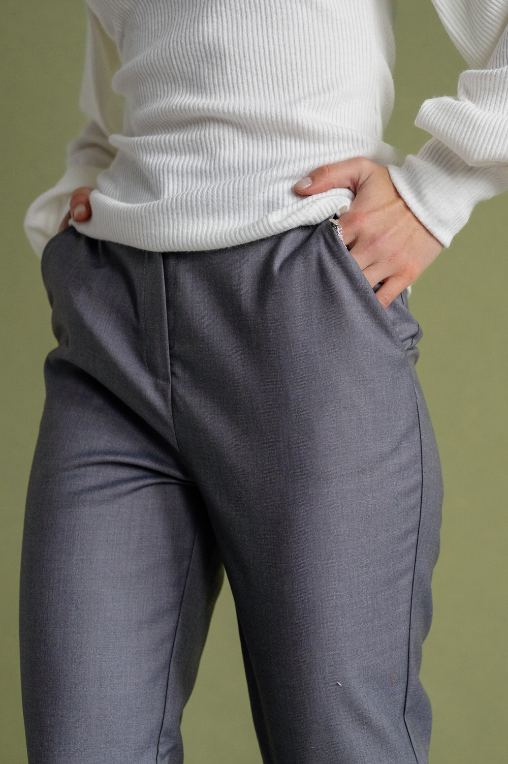 Щоденні штани в клітку з кишенями. Застібка-змійка з гудзиком, внизу манжети.