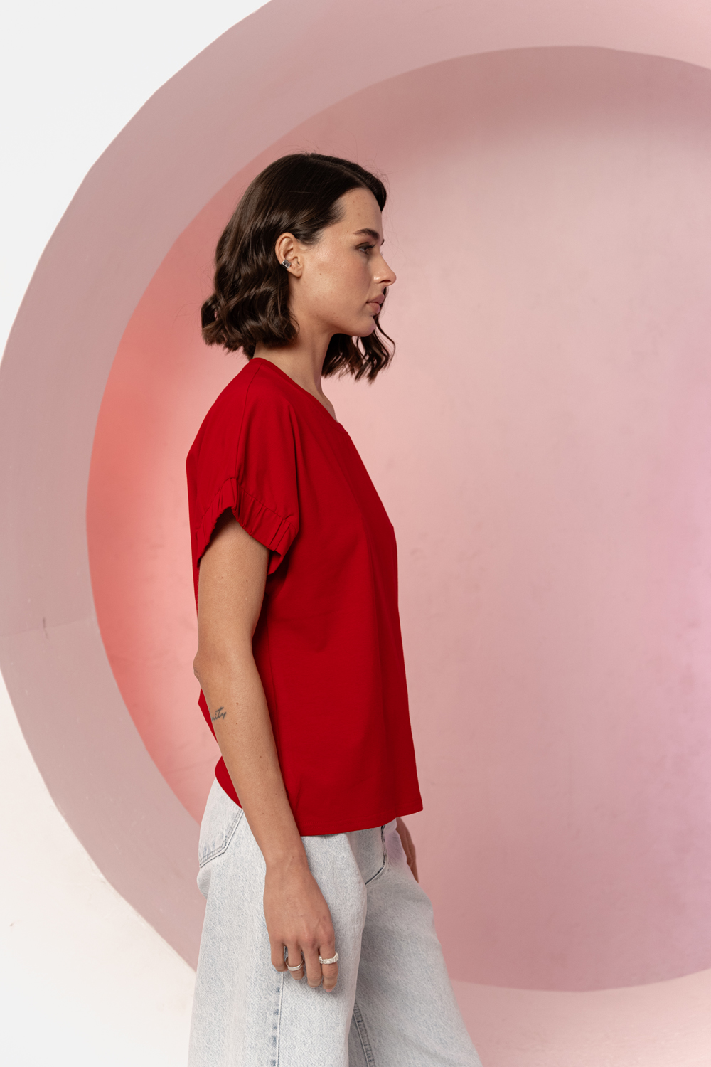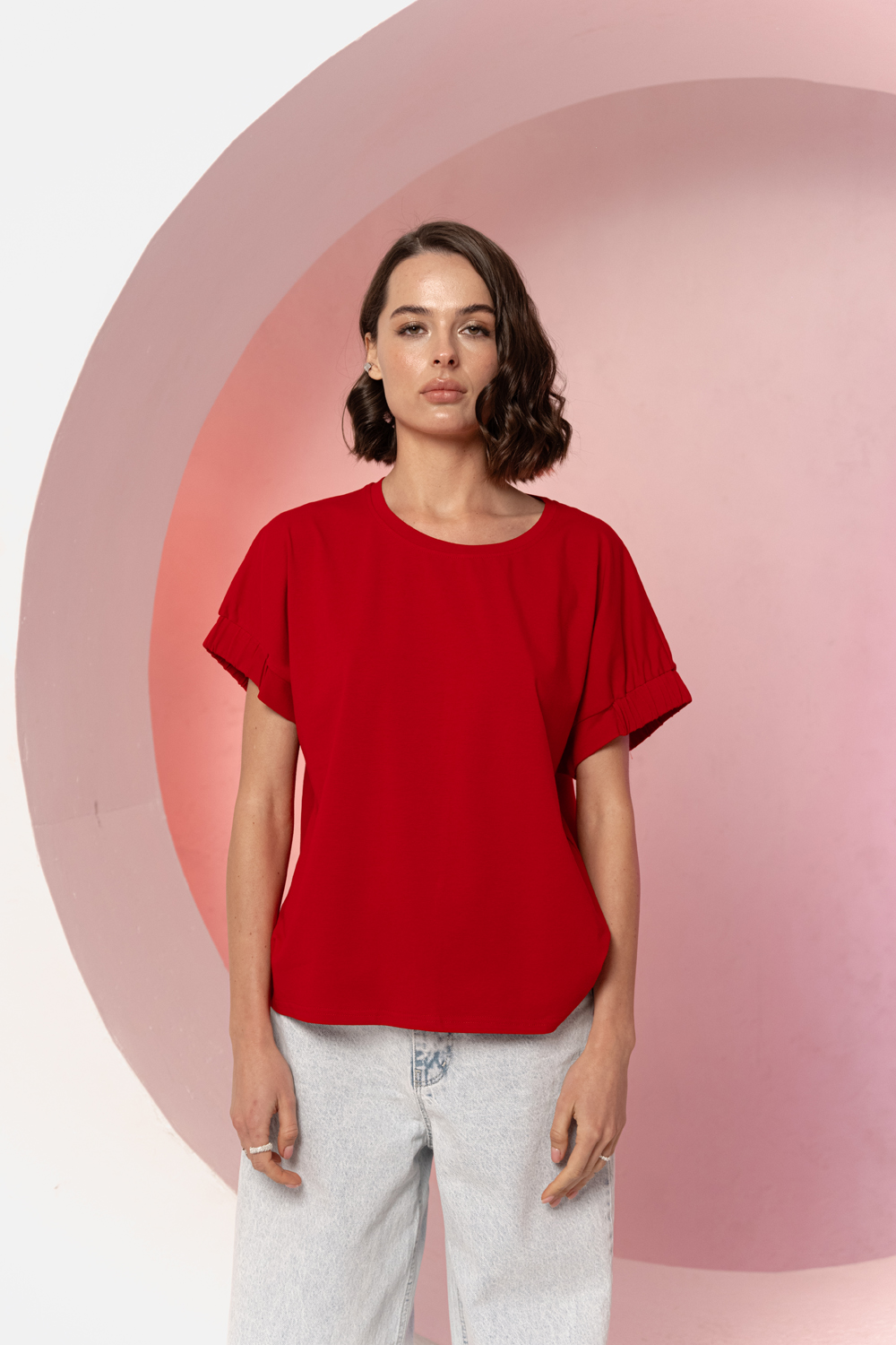Вільна футболка з круглою горловиною. Рукав з манжетом на гумці. Ідеально підходить для повсякденного носіння та легко комбінується з будь-яким вбранням.