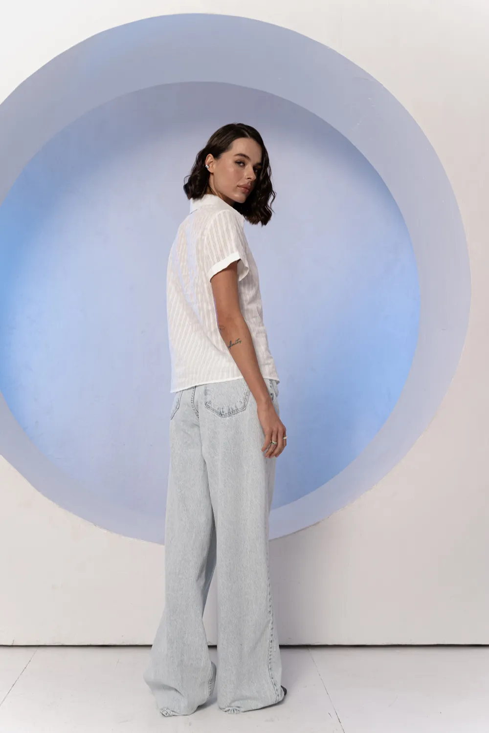 Свіжість та комфорт з нашою котоновою блузкою вільного крою. Елегантний комір стійко-відкладний і короткий рукав з манжетом на ґудзиках роблять цю блузу додатковим вибором для повсякденного стилю.