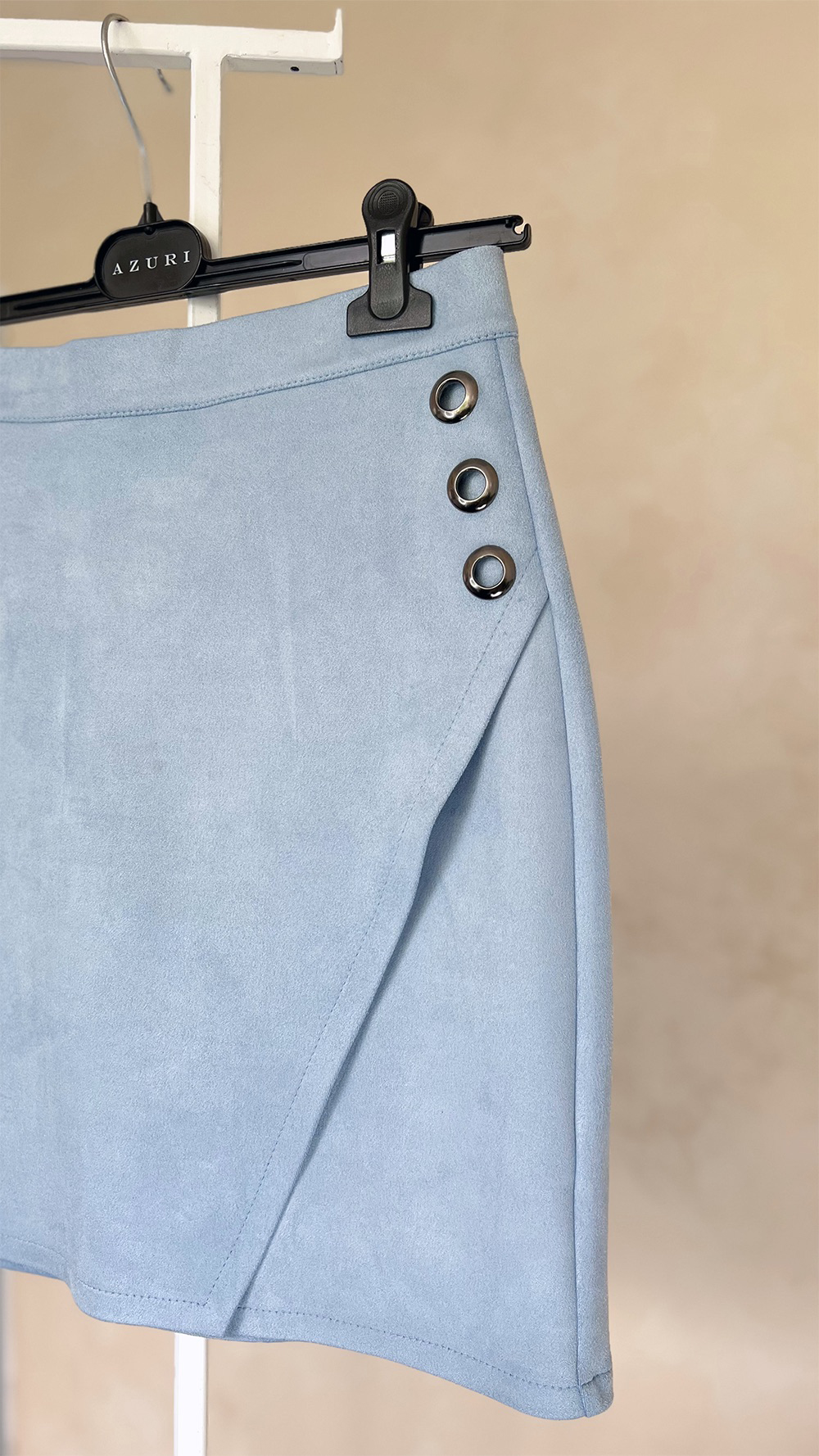 Замшева міні-спідниця з люверсами.Трапецієподібна форма спідниці візуально звужує талію і струнить ноги.