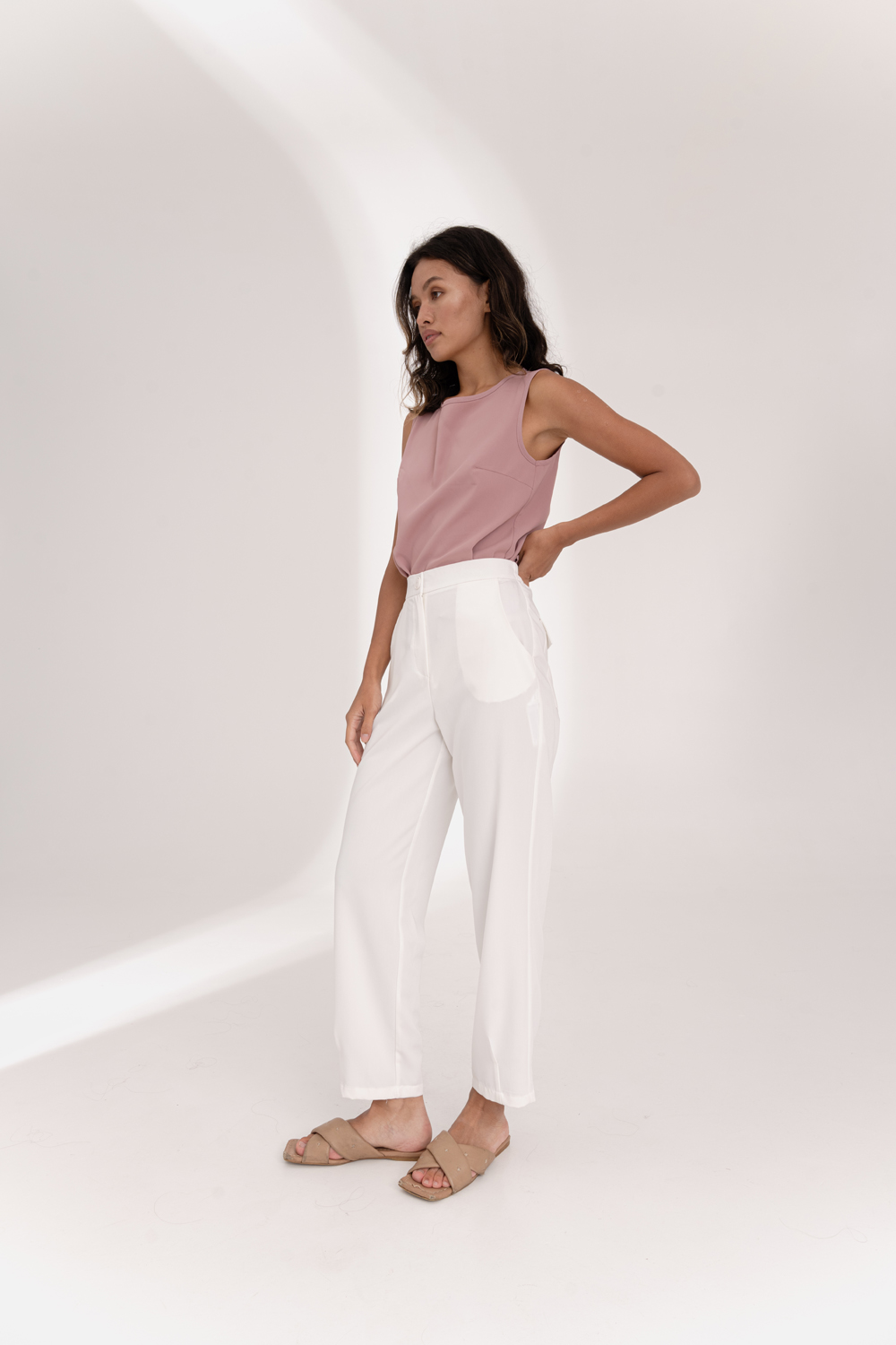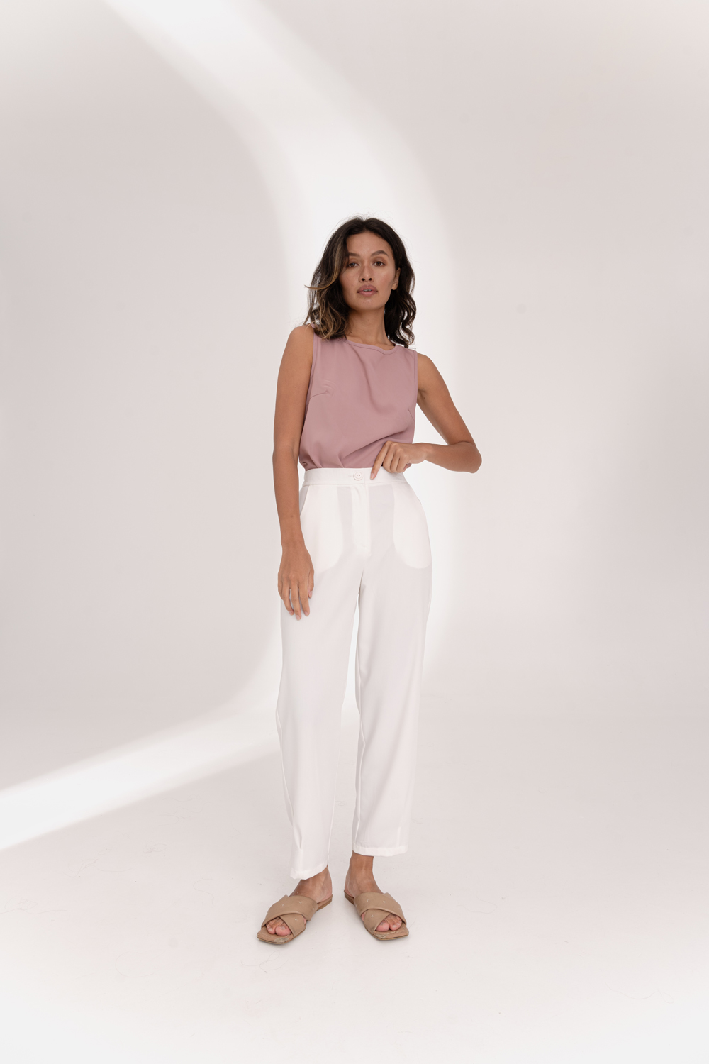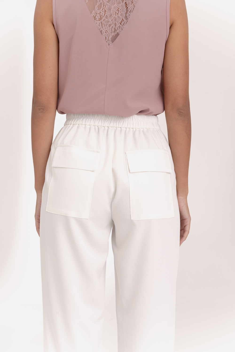 Milk trousers with an elasticated waistband and pleats at the bottom