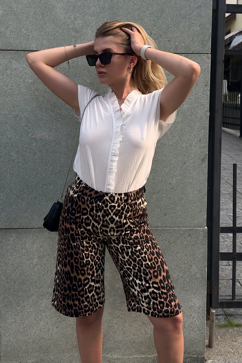 Леопардовые удлиненные шорты