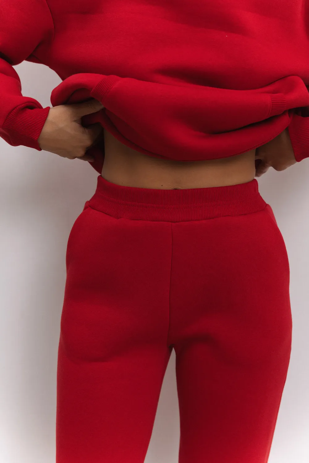 Удобные теплые спортивные брюки с манжетами и поясом из рибаны, а также функциональными боковыми карманами.